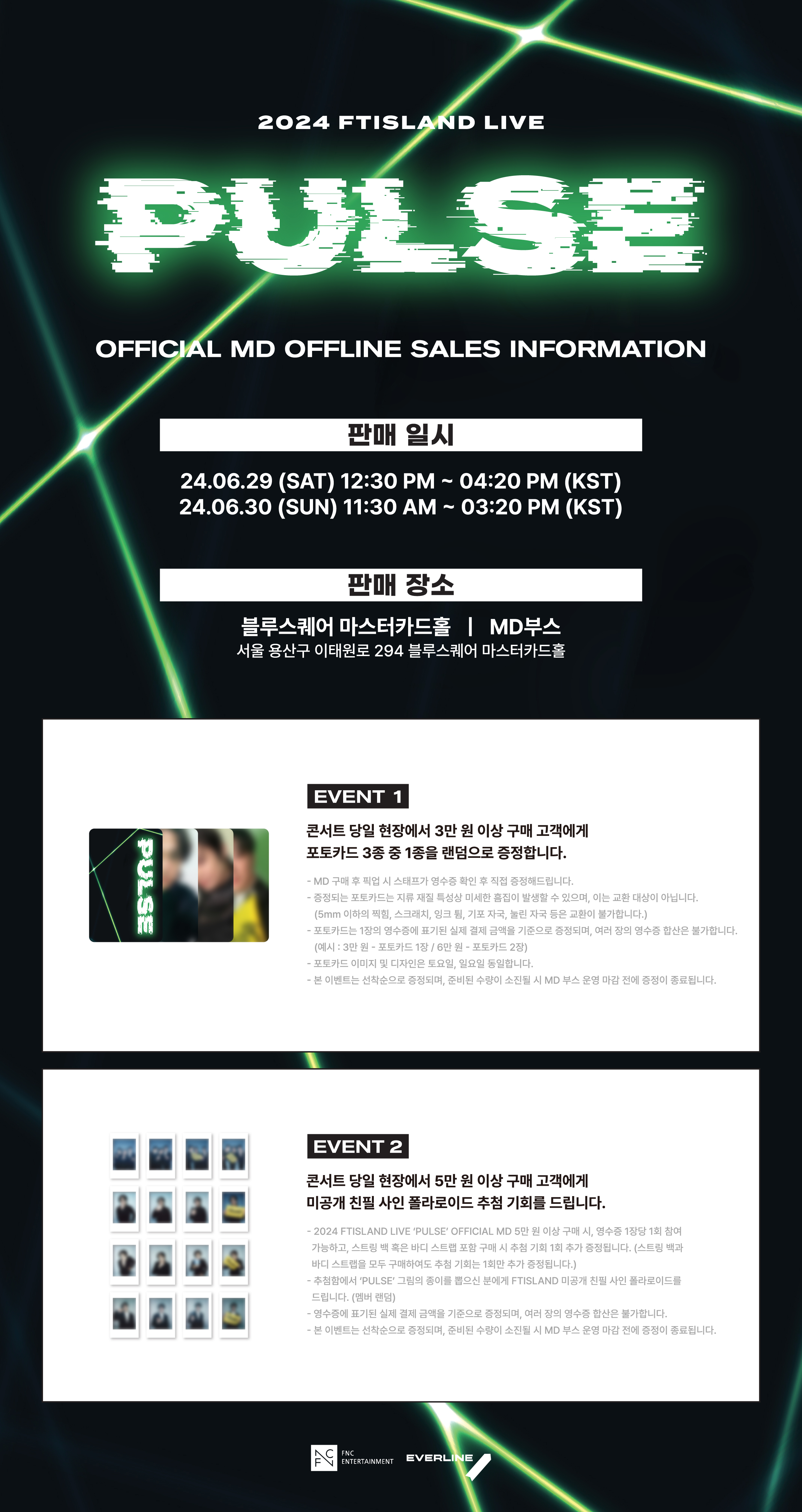 2024 FTISLAND LIVE ‘PULSE’ OFFICIAL MD 현장 판매를 진행합니다.