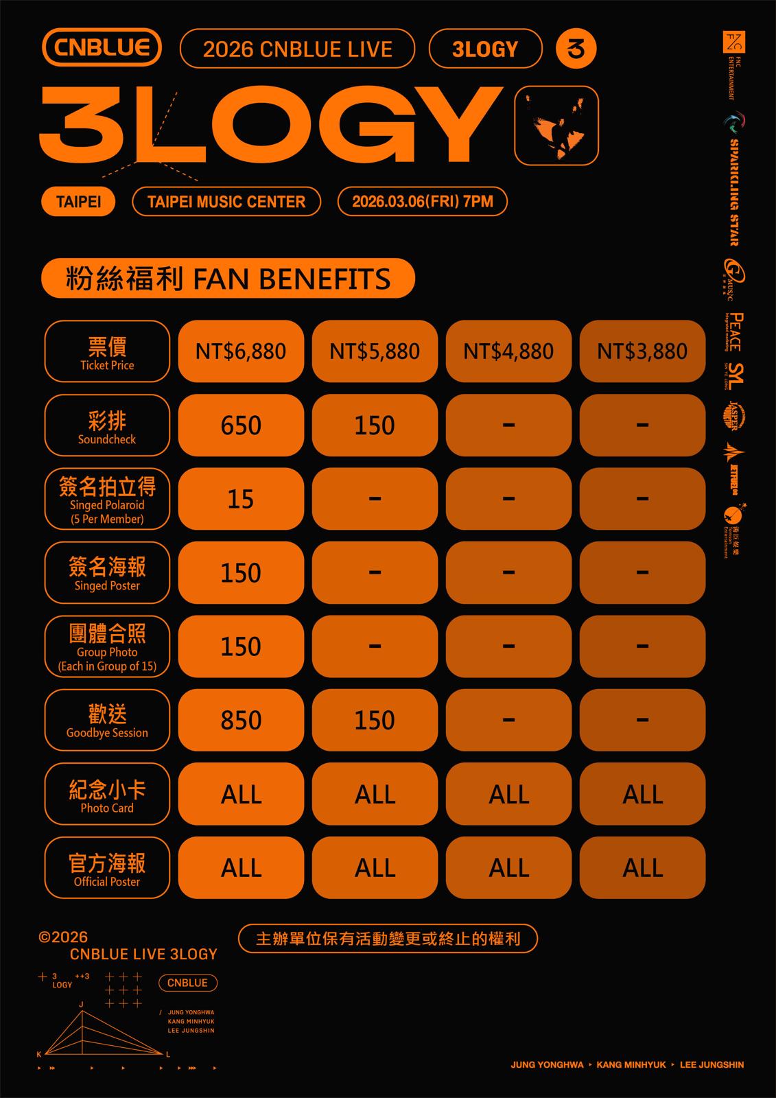 2026 CNBLUE LIVE WORLD TOUR「3LOGY」IN TAIPEI 的熱烈關注與支持。