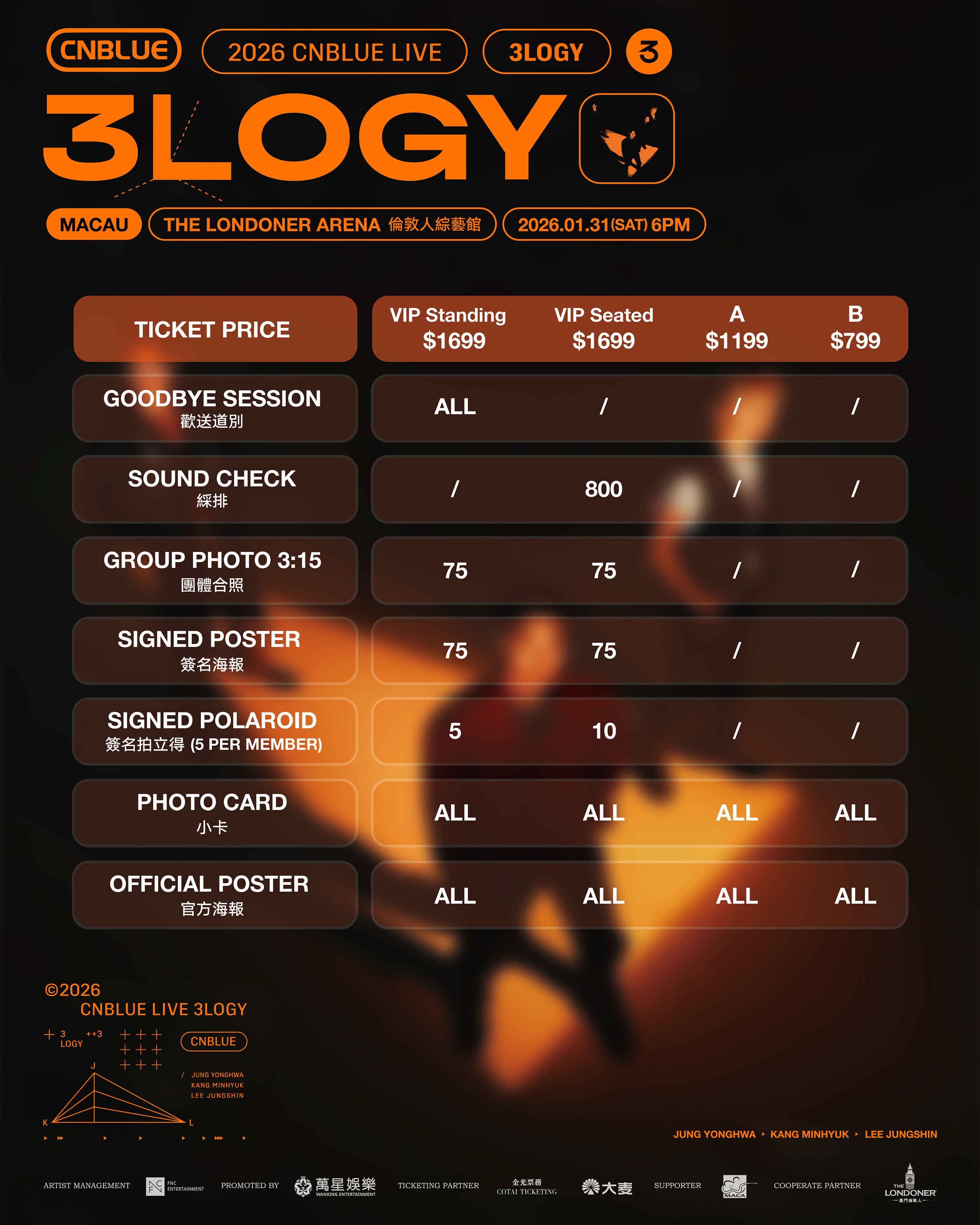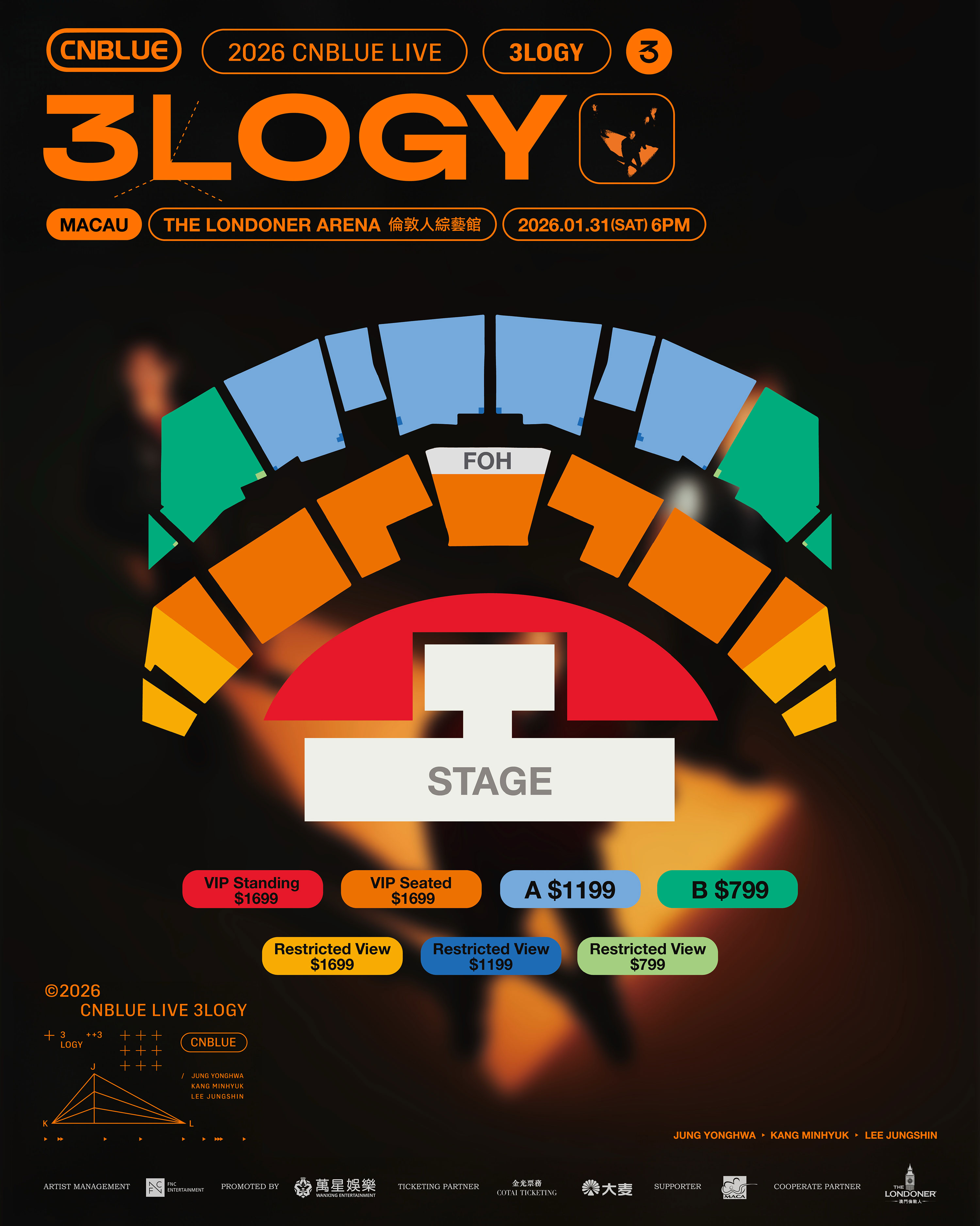 ■ 티켓가: MOP 1,699 (VIP Standing/VIP Seated) / MOP 1,199 (A) / MOP 799 (B)
