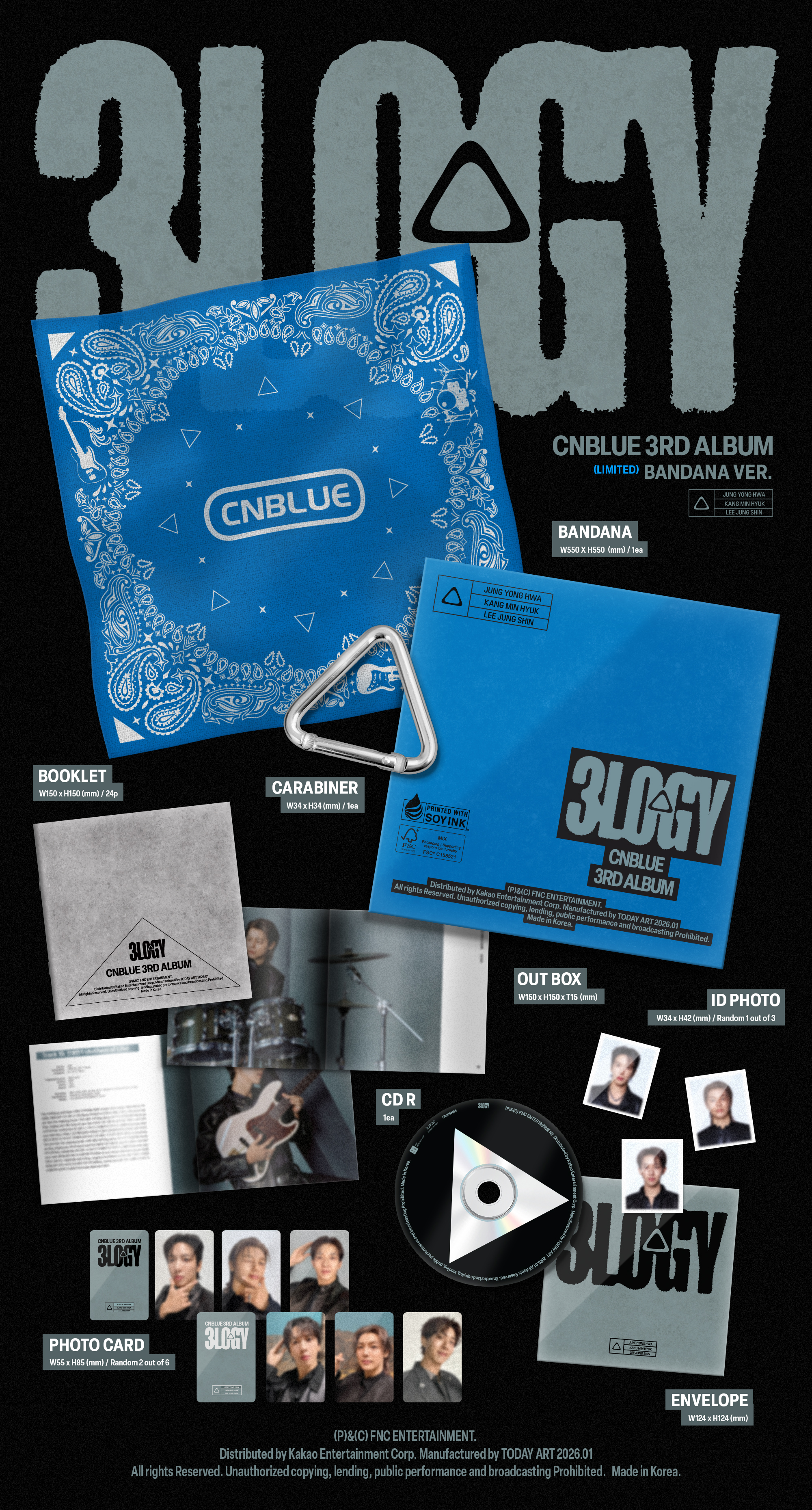 CNBLUE 3RD ALBUM [3LOGY] SLEEVE Ver. / POSTCARD Ver. / BANDANA