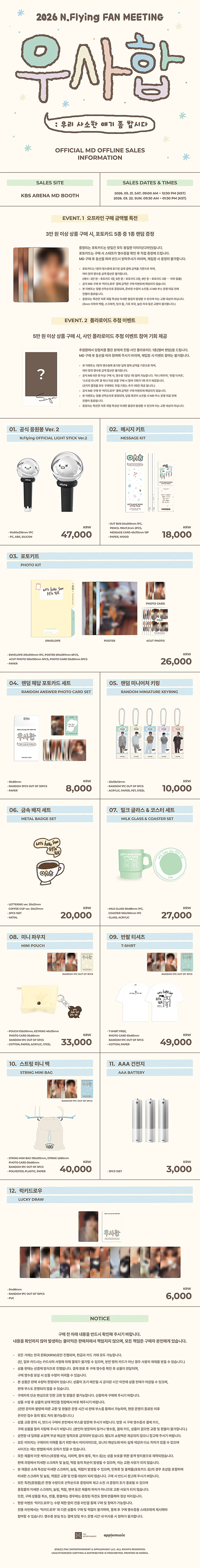 2026 N.Flying FAN MEETING ‘우.사.합 : 우리 사소한 얘기 좀 합시다’ OFFICIAL MD 현장 판매를 진행합니다. 구매 시 하단의 유의사항을 꼭 확인하여 주시기 바랍니다.